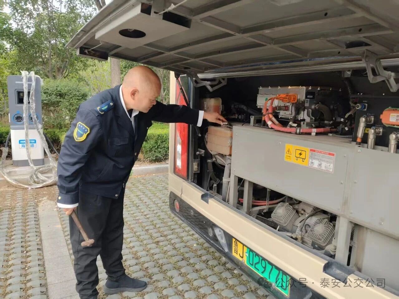 他繞車而行,逐處查看車身是否干凈;俯身檢查輪胎,確認氣壓與磨損情況是否正常;走到車后掀開引擎蓋,仔細核查冷卻液液位,順手清理艙內(nèi)灰塵——每一個動作都有條不紊,不留絲毫疏漏。“假期老人、孩子多,車輛安全容不得半點馬虎。”他一邊檢查,一邊輕聲叮囑自己。