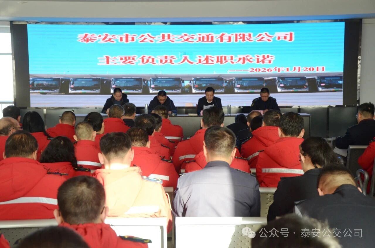 市交通運輸局道路運輸管理服務(wù)中心黨委委員、紀委書記宋雅冬,對本次述職承諾情況進行了全面的點評,肯定了公交公司在安全生產(chǎn)工作中取得的成效,同時對2026年安全工作提出了要求和建議。他指出,泰安公交通過一系列扎實舉措,實現(xiàn)事故起數(shù)、費用的明顯下降,安全成效顯著,是落實企業(yè)安全生產(chǎn)主體責(zé)任的生動實踐。結(jié)合歲末年初安全生產(chǎn)形勢,宋雅冬提出四項要求,一是提高政治站位,扎實做好春運及兩會期間安全保障,聚焦車輛維護、客流疏導(dǎo)等關(guān)鍵環(huán)節(jié),嚴守安全操作規(guī)范,杜絕違章行為;二是深化治本攻堅三年行動,緊盯2026年收官目標,狠抓全員安全培訓(xùn)、車輛本質(zhì)安全提升和重大隱患動態(tài)清零;三是抓實冬季安全防范,落實防凍防滑、應(yīng)急值守等措施,強化“晨會”“有獎舉報”等制度落地;四是提前部署春節(jié)前隱患排查和惡劣天氣預(yù)警防范,確保安全運營。會上,公司領(lǐng)導(dǎo)班子成員簽訂了《2026年安全生產(chǎn)責(zé)任書》,壓實安全承諾,進一步凝聚“人人有責(zé)、各負其責(zé)、失職追責(zé)”的安全共識。本次述職承諾,既是對過往工作的全面復(fù)盤,更是對未來公司安全發(fā)展的鄭重承諾。泰安公交將以本次會議為契機,壓實責(zé)任、補齊短板、創(chuàng)新突破,持續(xù)提升安全生產(chǎn)管理水平,為泰安公交高質(zhì)量發(fā)展筑牢安全根基。